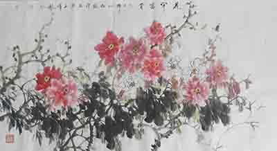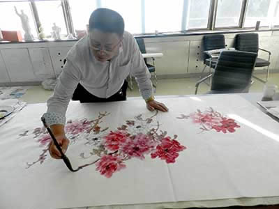 10月7日,当代著名画家王玉伟到访安博·体育(中国),受到公司领导热情接待。图为王玉伟即兴创作《花开富贵》。(办公室 冯继宏)
