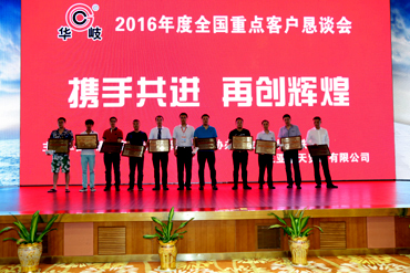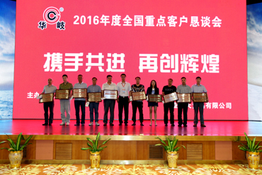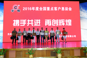 会上,公司向唐山市荣跃商贸有限公司等10家单位颁发了“2015年度总销量十佳”奖项,向沈阳新国物资有限公司等20家单位颁发了“2015年度特殊贡献奖”以及奖品。